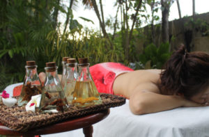 お名前を伝えて入店していただき、更衣室にて南国風のローブに着替えていただきます。